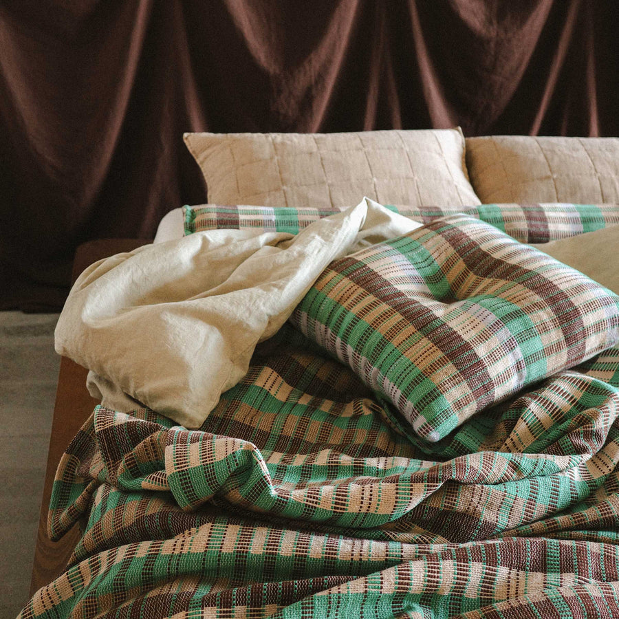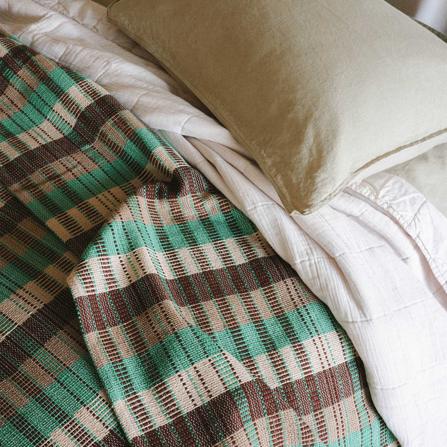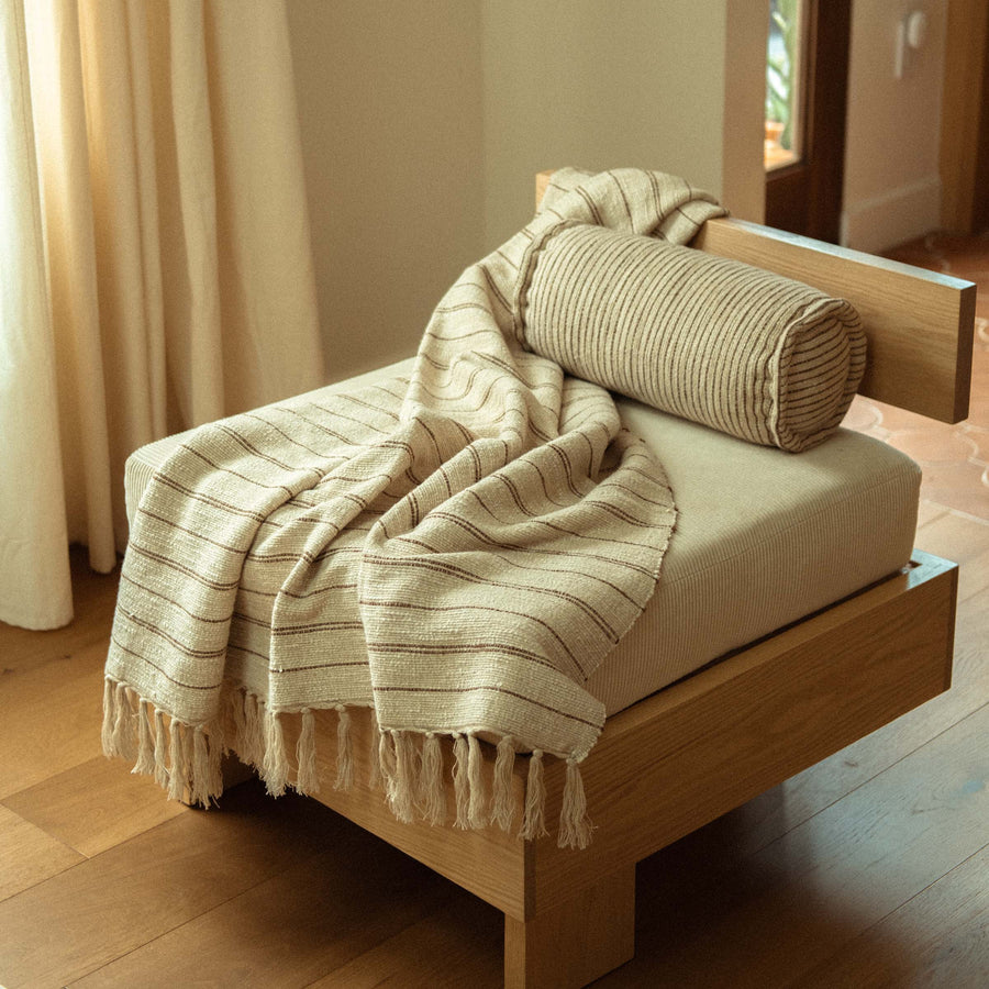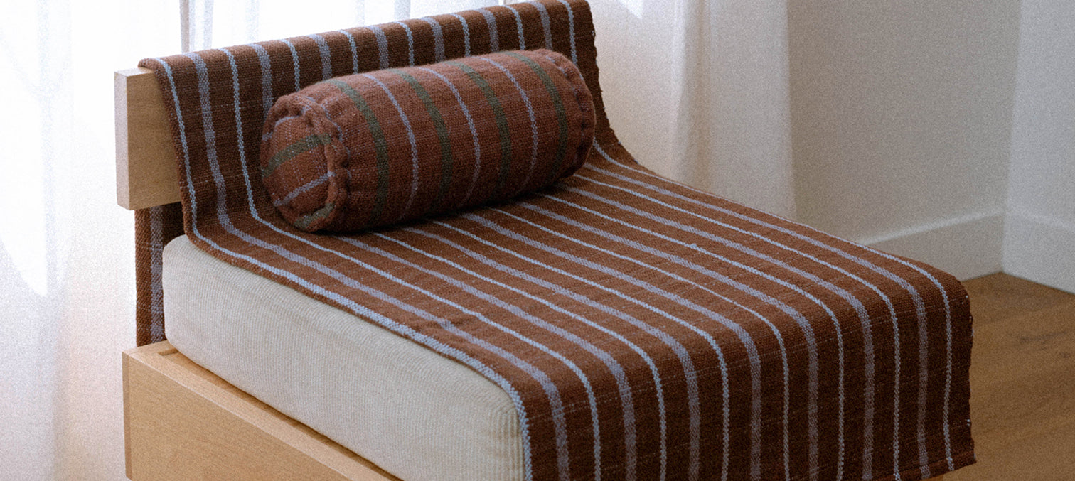 A thoughtful collection of handmade throws, pillows, and candles.