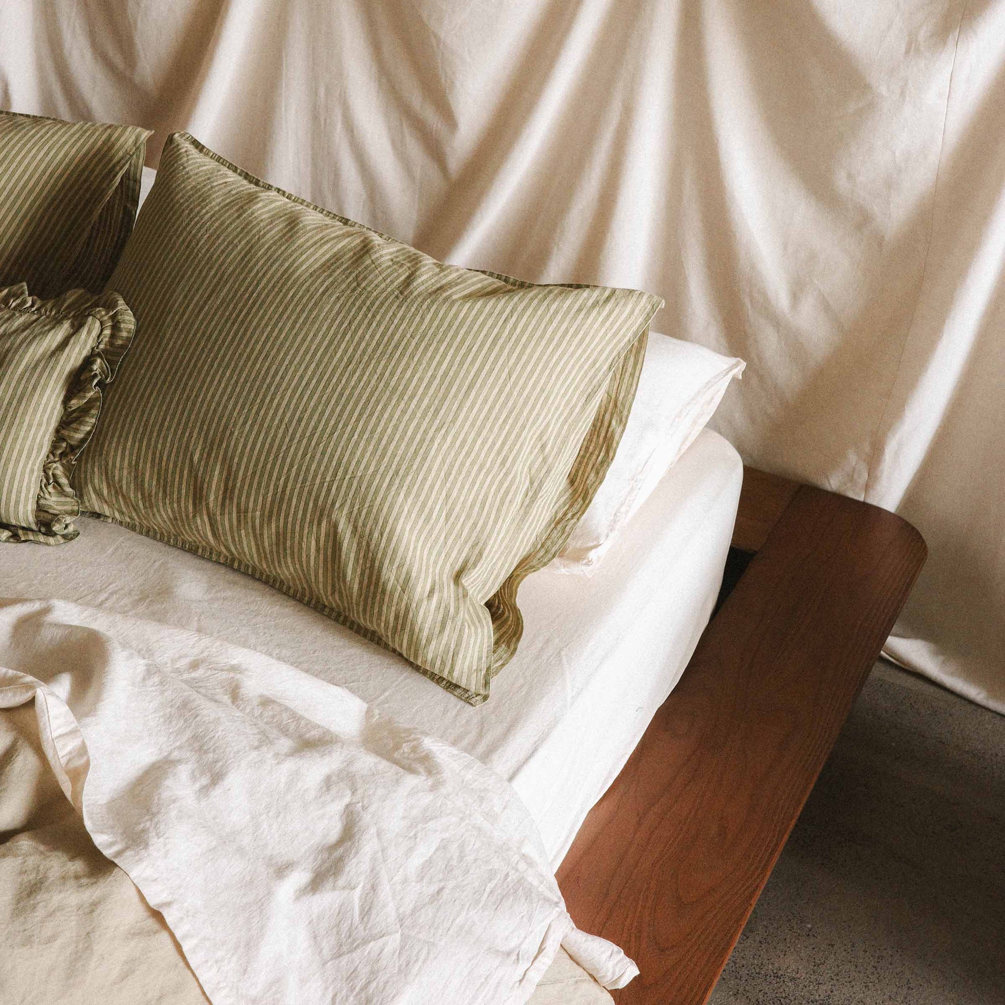 Our newest bedding material is woven from a soft and airy hemp/cotton blend and pre-washed for extra softness. Hemp is an incredibly resilient crop that can be grown almost anywhere in the world, without the need for pesticides, and actually replenishes the soil with valuable nutrients. This beautiful new fabrication has a very similar look, feel, and breathability as our Heirloom Linen bedding with a subtle slub texture, perfectly imperfect appearance and even more benefits from a sustainability standpoint.